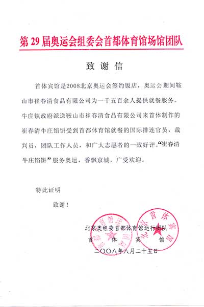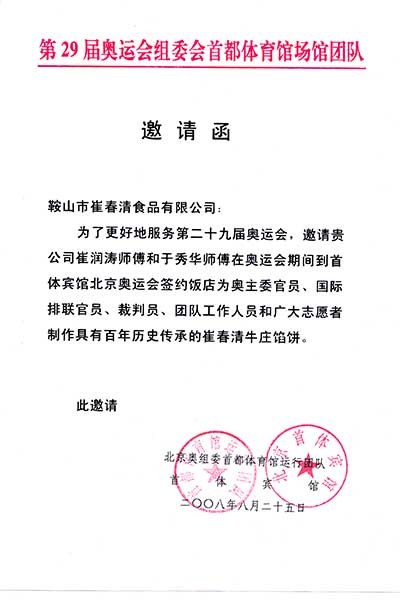 信息動(dòng)態(tài)->奧運(yùn)會(huì)組委會(huì)首都體育館場(chǎng)館團(tuán)隊(duì)---邀請(qǐng)函、致謝信